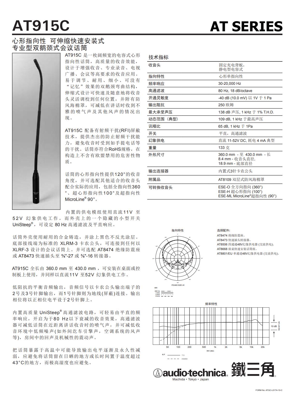 AT 系列 AT915C AT915H AT915ML AT850/H AT837QL 心形指向性雙鵝頸式會(huì)議話筒