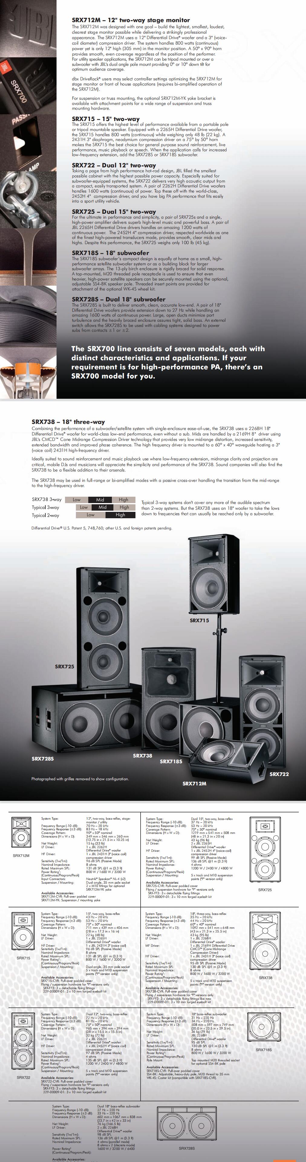 SRX700系列音箱采用先進的功率傳輸技術(shù)和更佳的專業(yè)擴聲演出性能。同時,JBL的技術(shù)創(chuàng)新使音箱的重量大大減輕,使音箱的安裝拆卸更為快捷方便,所有這些優(yōu)良特性和先進技術(shù),盡在SRX700系列中。